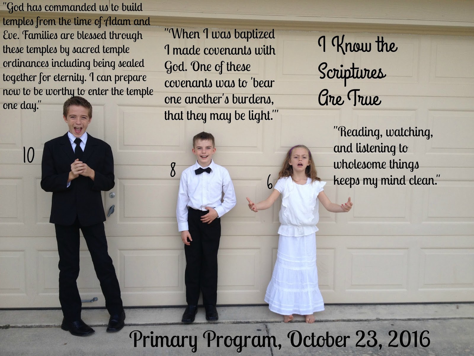 On October 23, the three older kids were in the Primary presentation. It's always something to look forward to. This year's theme was "I Know the Scriptures Are True." For the first time, I put all their parts on a picture so we could remember it all. I wish I had done this for the last several years!